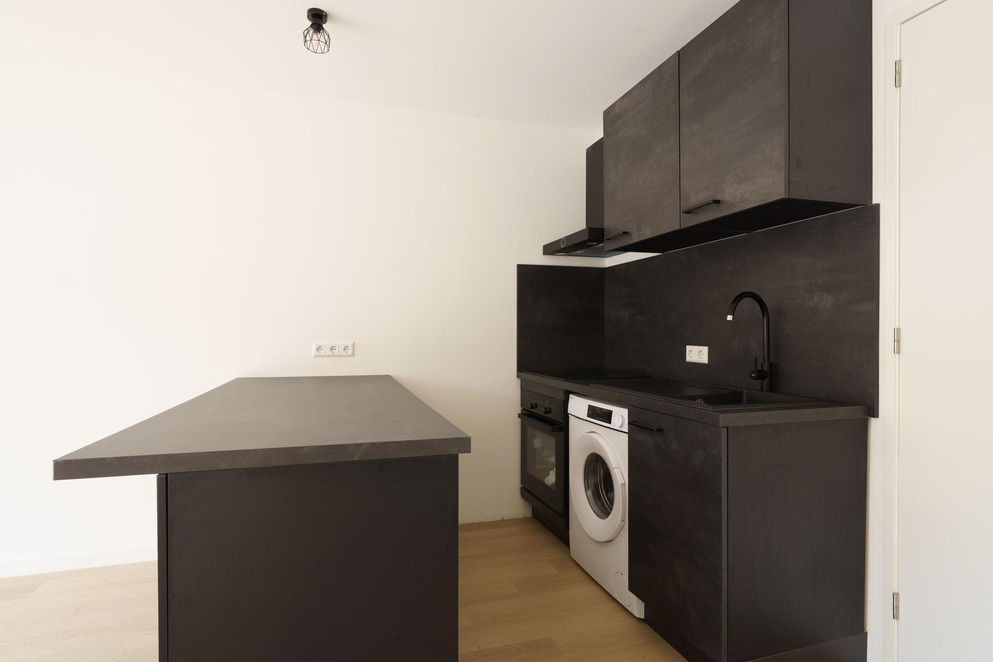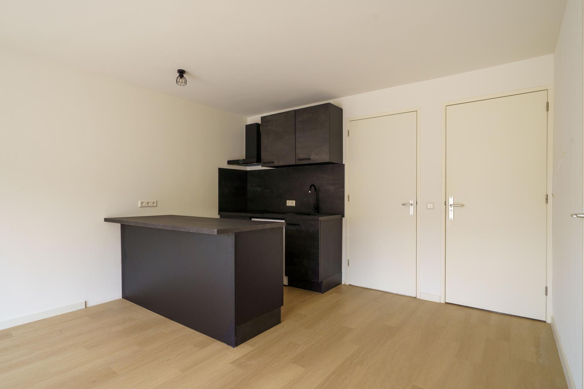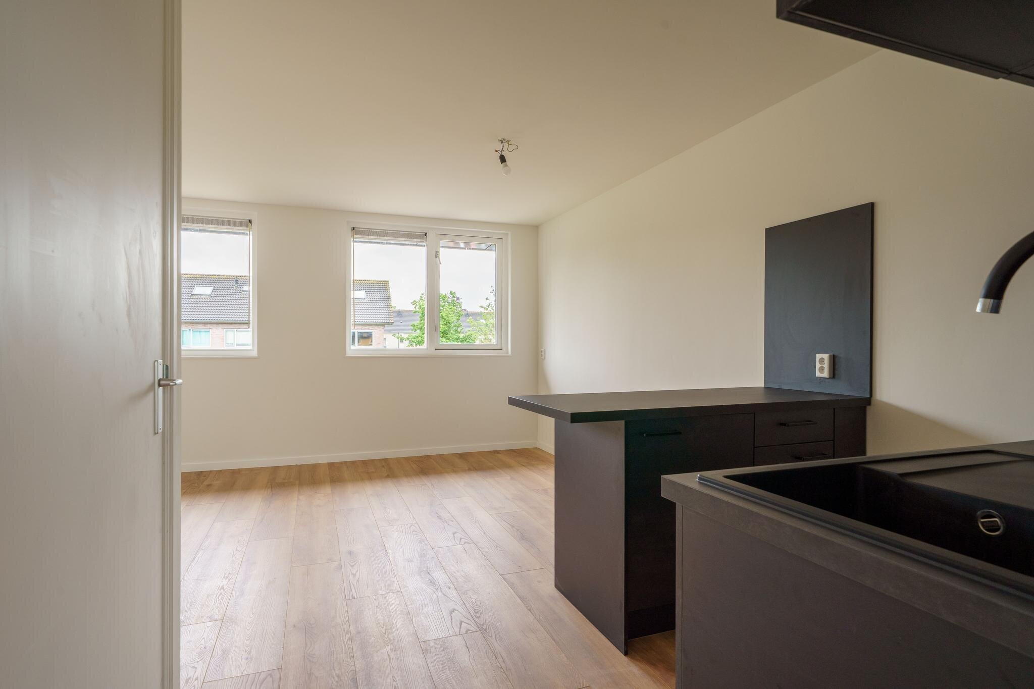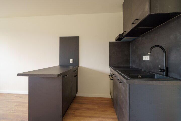 Via de toegangsdeur en de trap in de entreehal op de begane grond bereikt u de eerste verdieping. Hier bevindt zich een overloop met vaste kast en toegang tot de living. Deze is aan de achterzijde gelegen over de gehele breedte van de woning en heeft veel lichtinval. Hier bevindt zich tevens de open keuken. Deze is eveneens v.v. een inbouwkeuken bestaande uit 2 rechte blokken en v.v. een vaatwasser, koelkast, oven, inductie kookplaat en een afzuigkap (recirculatie). Vanuit de living bereikt u een slaapkamer met aangrenzend de badkamer. De moderne badkamer is geheel betegeld en uitgevoerd met een inloopdouche, wastafel, toilet (zwevend closet) en de aansluitingen voor de wasmachine. De vloeren van de bovenwoning zijn v.v. laminaat en de wanden zijn glad gestuukt. Op de 1e verdieping zijn de vloeren uitgevoerd met vloerverwarming. Via een trap op de overloop bereikt u de tweede verdieping.