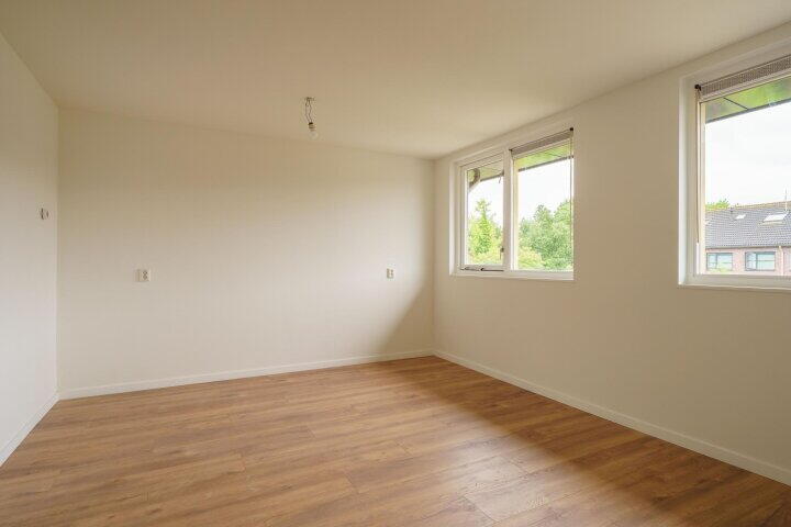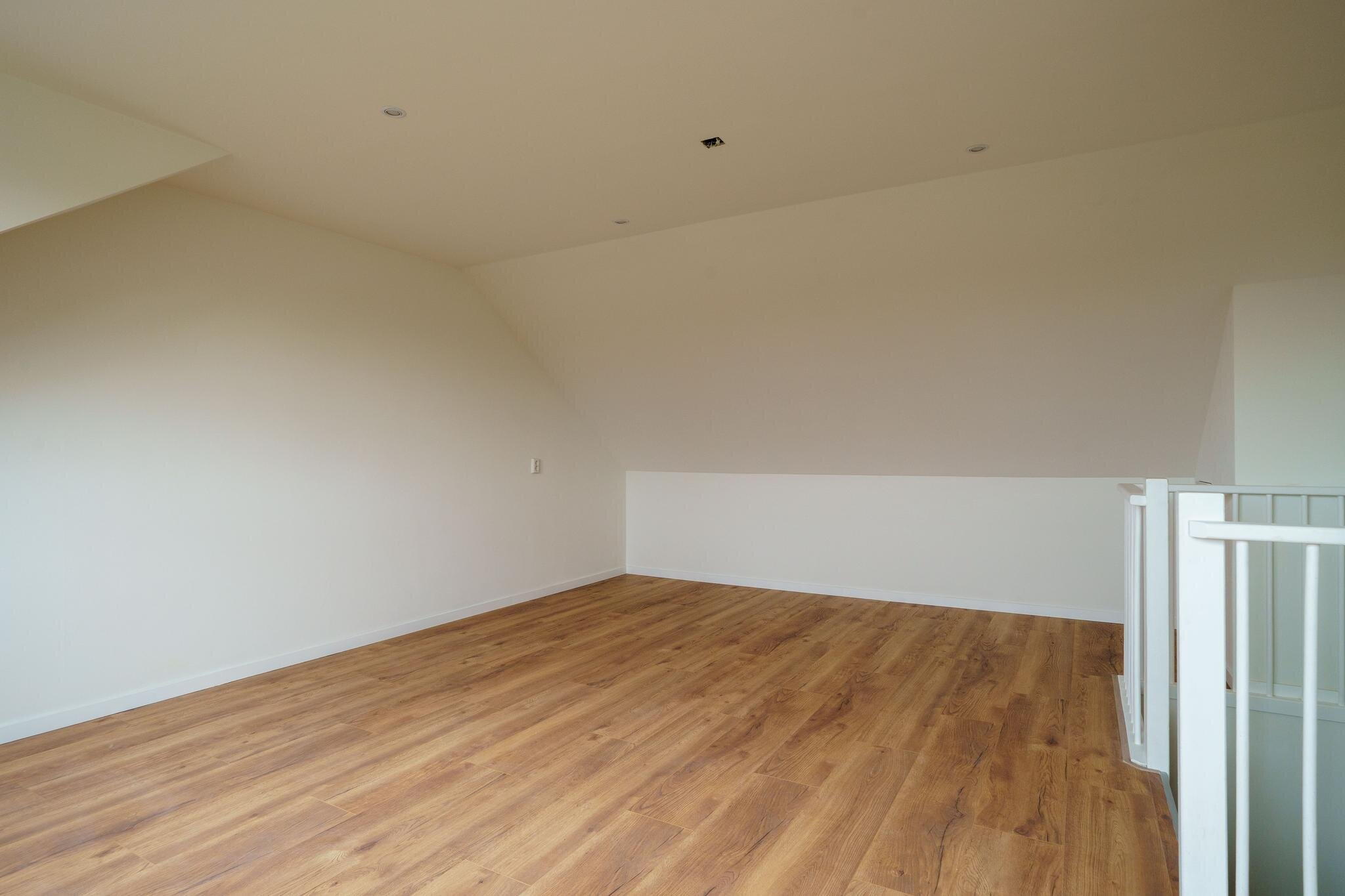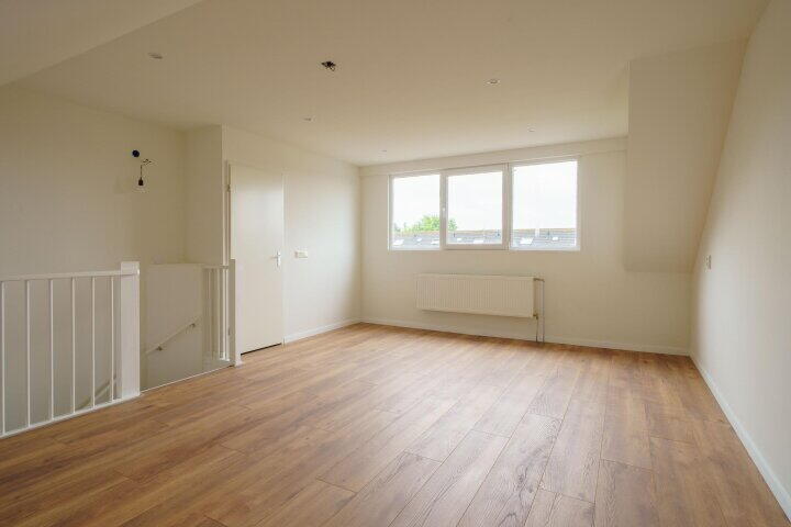 U treft hier een open ruimte met een brede dakkapel v.v. kunststof kozijnen (2025). U heeft hier voldoende ruimte om één grote masterbedroom of twee kleinere slaapkamers te realiseren. Hier bevinden zich tevens inbouwkasten voor de cv-ketel en de mv-unit. Bergruimte kan eventueel worden gerealiseerd achter de knieschotten.
