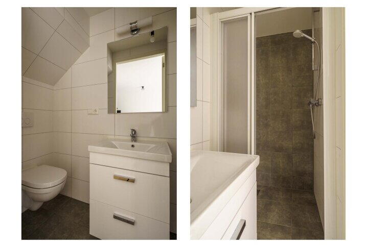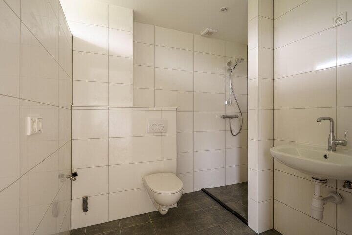 - Toilet, wastafelmeubel, inloopdouche toilet, wastafel, inloopdouche, wasmachineaansluiting